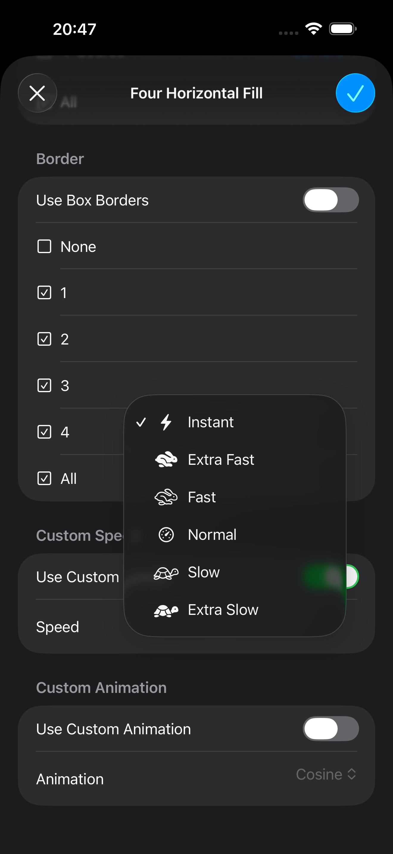 6. Tap **Speed** and select the animation speed you wish to use with the preset.