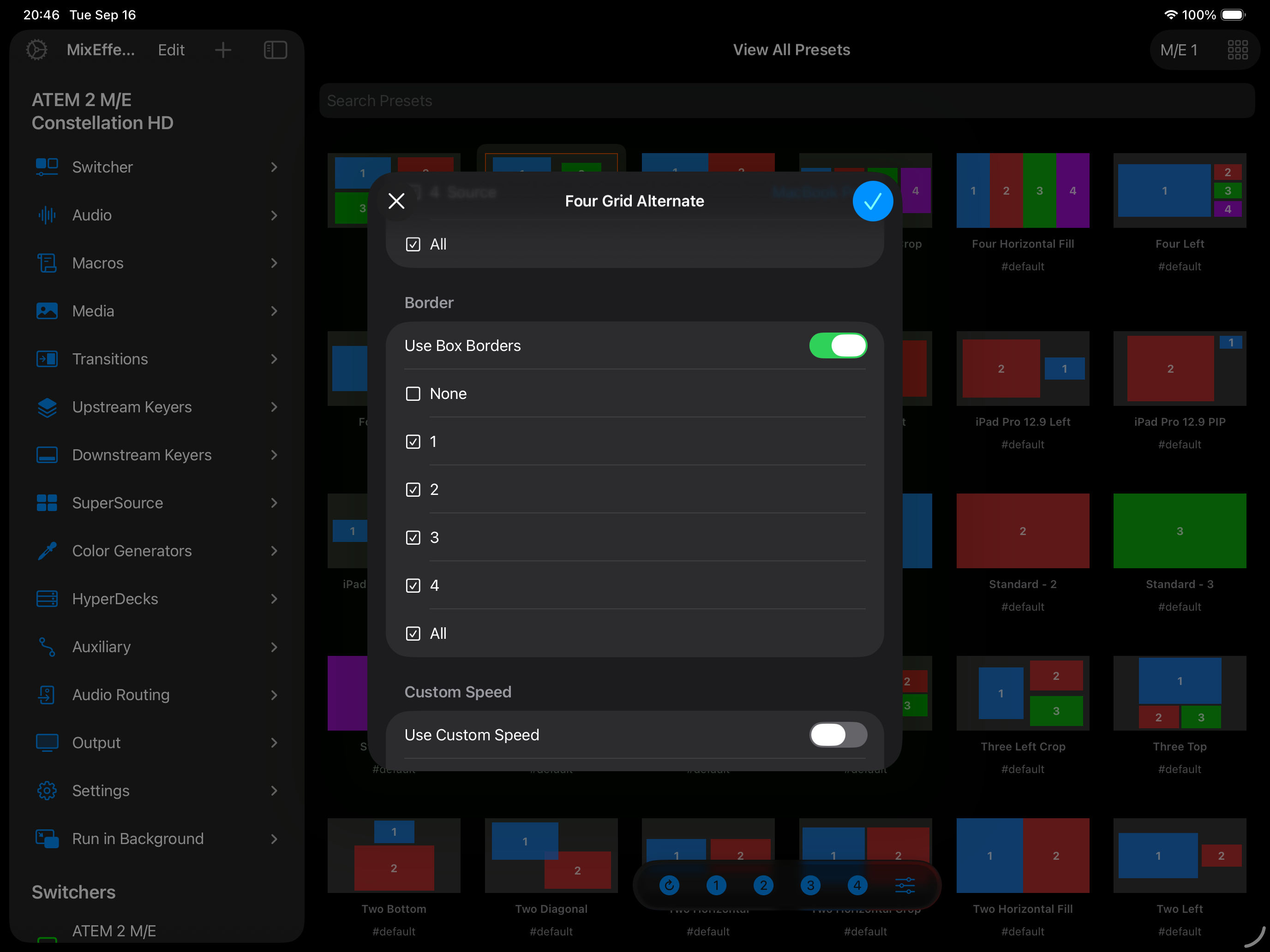 Now, when recalling the preset on switcher that supports SuperSource Box Borders, the saved border information will be displayed when viewing the preset.