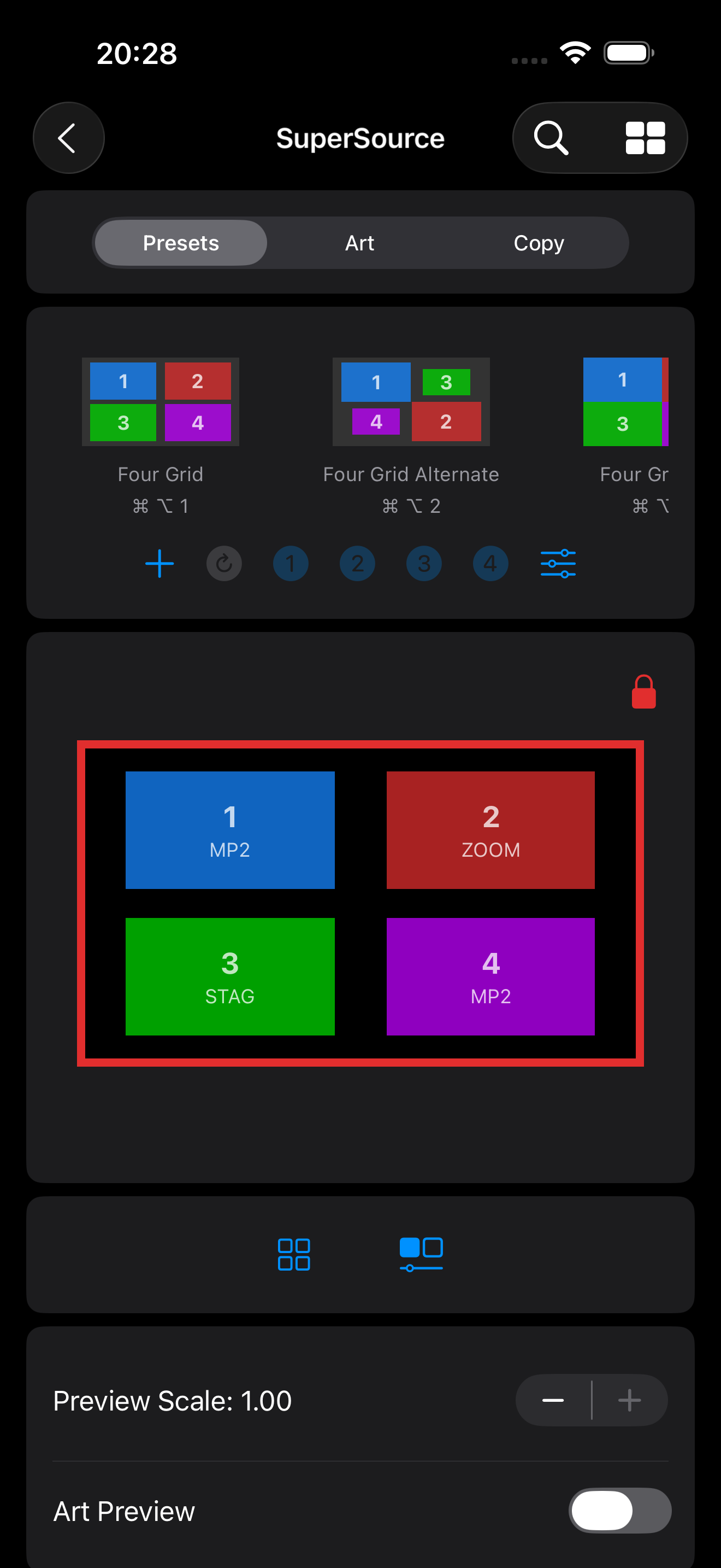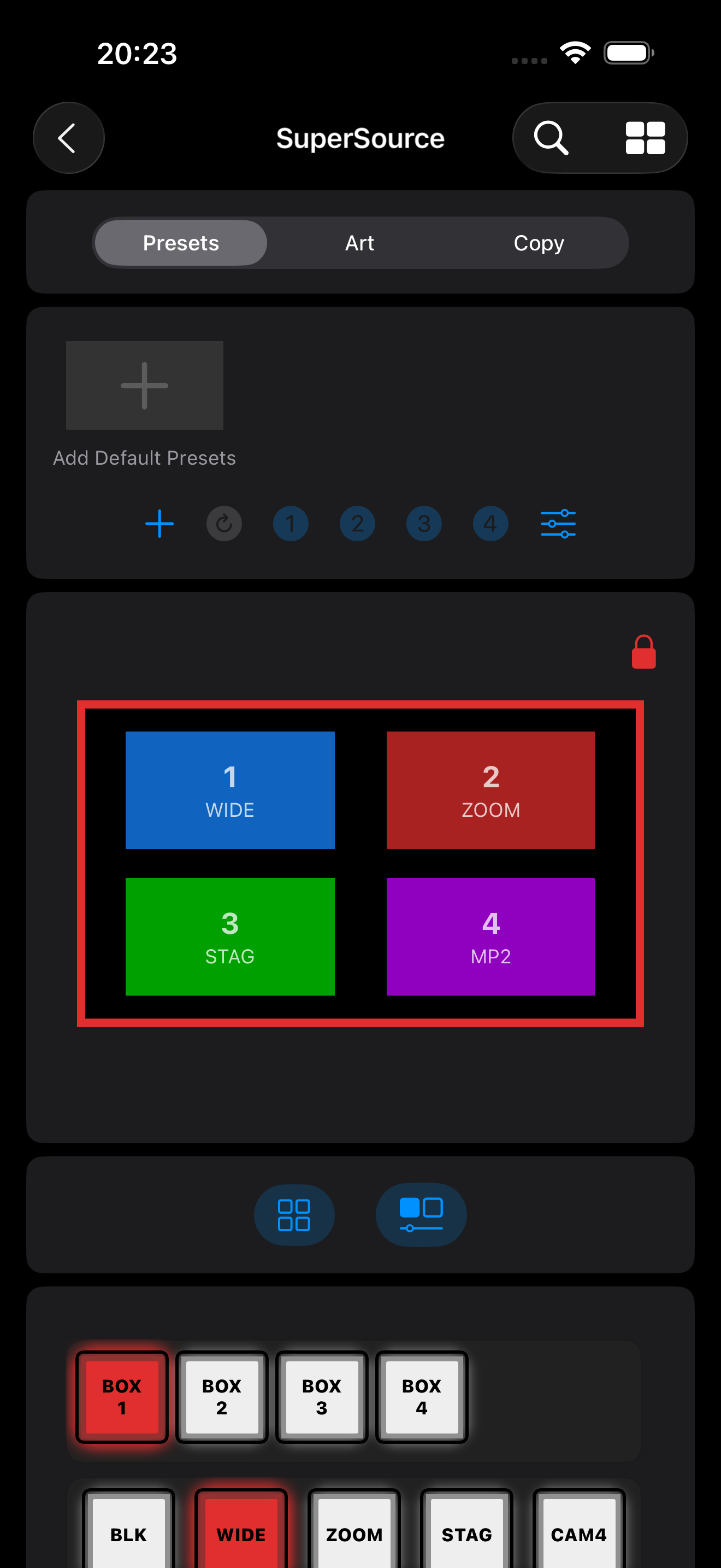 When you open up the SuperSource section, tap on the Add Default Presets button to install the default layouts.