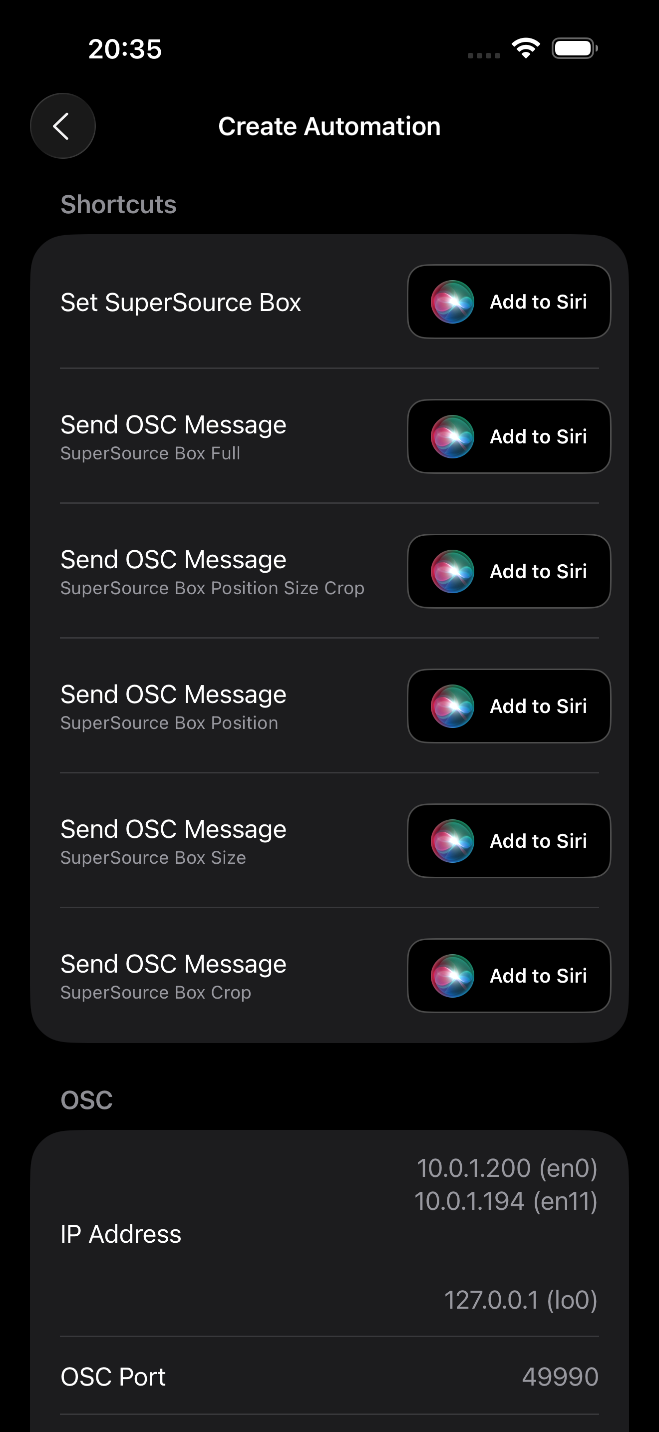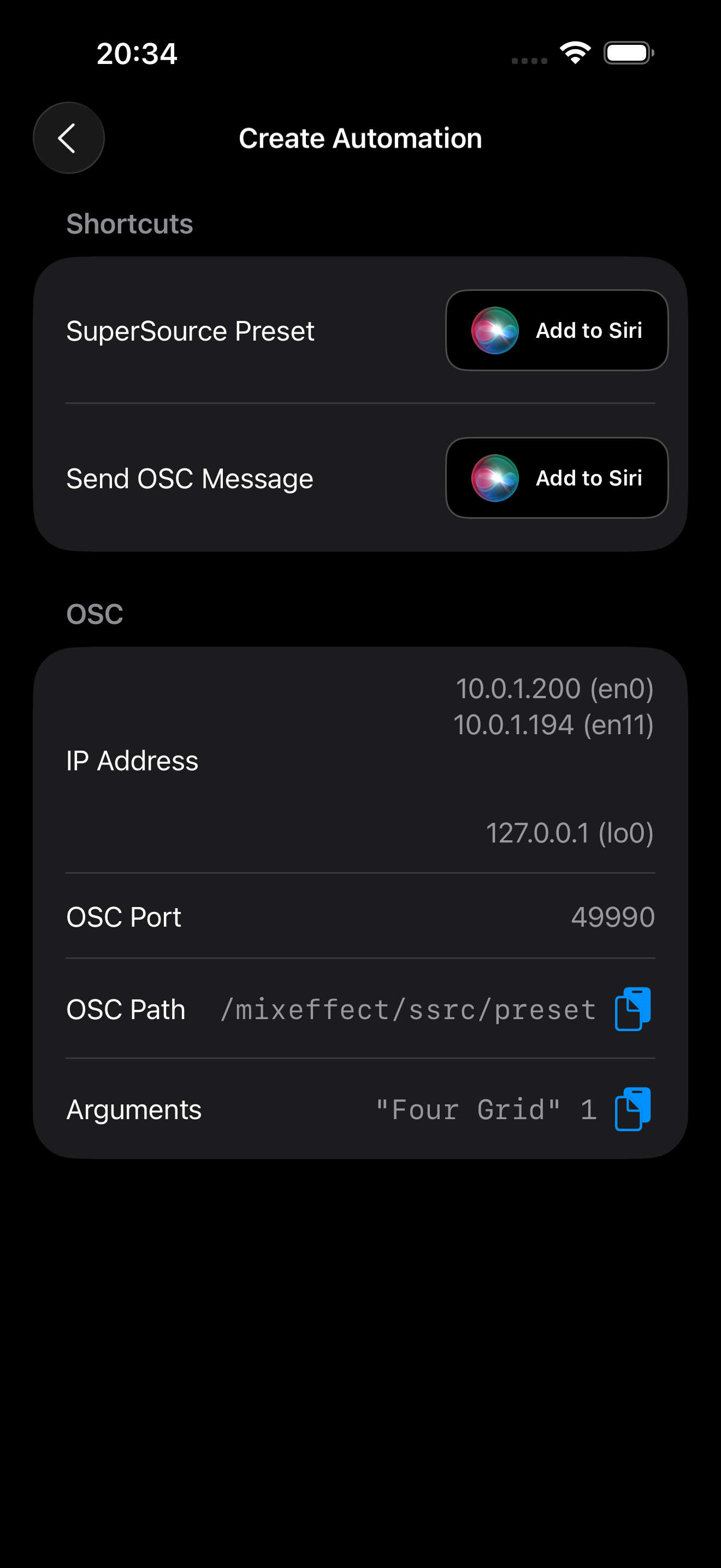 NOTE: This option will only appear if you have Enable Automations active in MixEffect Settings and if you have Enable Shortcuts or Enable OSC turned on.